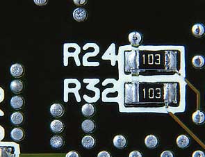 数标法主要用于贴片等小体积的电路,如: 103 表示10000Ω (10后面加3个0)也就是10K
