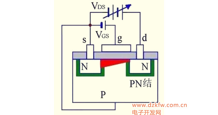 (1)VGS=0时,不管VDS极性如何,其中总有一个PN结反偏,所以不存在导电沟道。