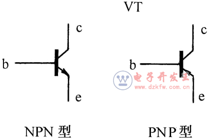 [2] 晶体三极管的文字符号为“VT”,图形符号如图所示。
