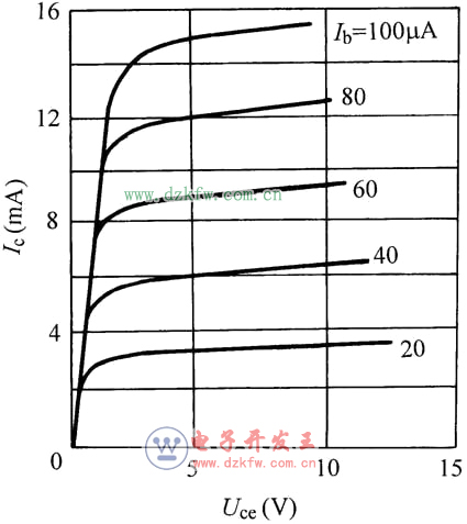 [3] 电流放大系数β是晶体三极管的主要参数之一,是指集电极电流Ic的变化量与基极电流Ib的变化量之比,反映了三极管的放大能力。如图所示,当Ib从40μA上升到60μA时,相应的Ic从6mA上升到9mA,其β=(9-6)×103/(60-40)=150。
