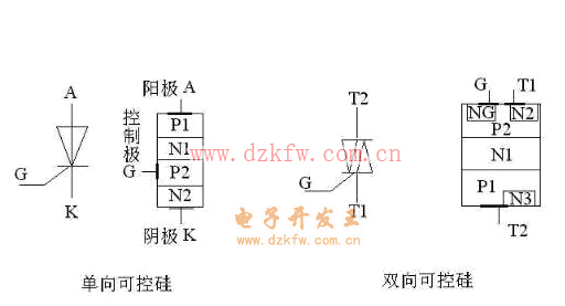 而对于双向晶闸管来说,它相当于两个单向晶闸管的反向并联,这样的话双向晶闸管在正、反两个方向上都能够控制导电,因此,双向晶闸管的正、反向伏安特性曲线具有对称性,所以给双向晶闸管的控制极加正的或负的触发脉冲,都能使管子触发导通,因此普遍用于交流控制开关场合。