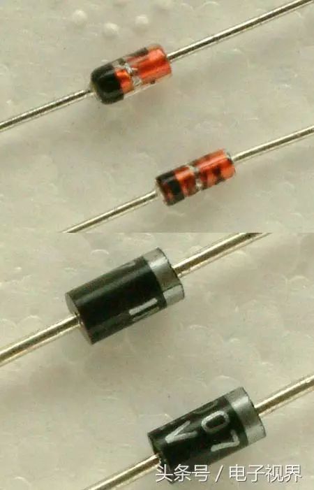 点接触型二极管是用一根很细的金属丝压在光洁的半导体晶片表面,通以脉冲电流,使触丝一端与晶片牢固地烧结在一起,形成一个“PN结”。由于是点接触,只允许通过较小的电流(不超过几十毫安),适用于高频小电流电路,如收音机的检波等。