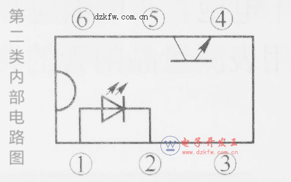 第二类型号:TLP632、TLPS32、TLP519、TLPS09、PC504、PC614、PC714,内部电路图如下: