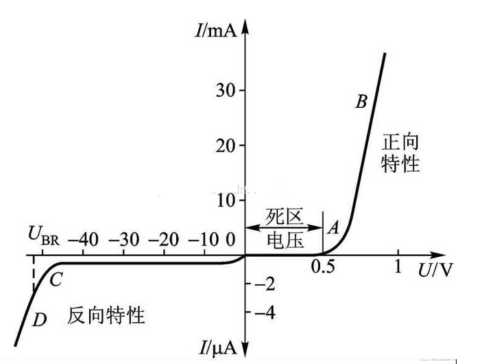 普通二极管伏安特性和肖特基二极管电压电流特性