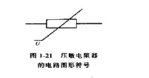 压敏电阻器简称VSR,是一种对电压敏感的非线性过电压保护半导体元件。它在电路中用文字符号“RV”或“R”表示,图1-21是其电路图形符号。压敏电阻器与普通电阻器不同,它是根据半导体材料的非线性特性制成的。
