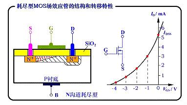 图1. N沟道耗尽型MOSFET的结构和转移特性曲线