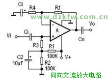 一个简单的运放,一般包括一个信号输出端,两个高阻抗输入端,同相和反相输入端。所以,可以用运放制作同相或是反相、差分放大器。