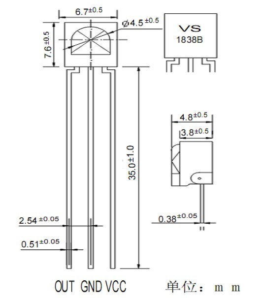 比较常见的图片红外一体化接收头LF0038H 0038A-TC VS838