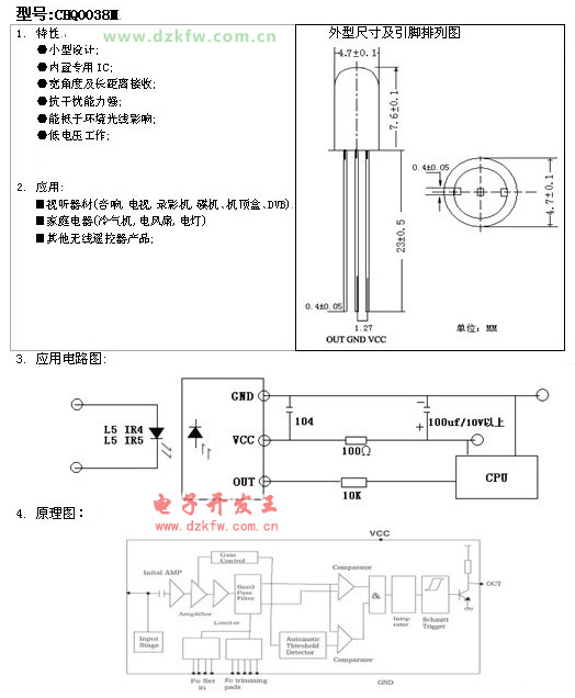 对于引脚顺序相同的可直接按顺序接入,如引脚顺序不对,则可用细导线引接。注意地线与电源线切不可接反,否则通电后接收头立即损坏。