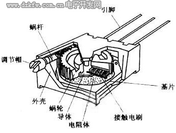 电位器或分压计,这是一种三端口器件。电位器被中间抽头分成两个电阻,通过中间抽头可以改变两个电阻的阻值,就可以改变分得的电压。