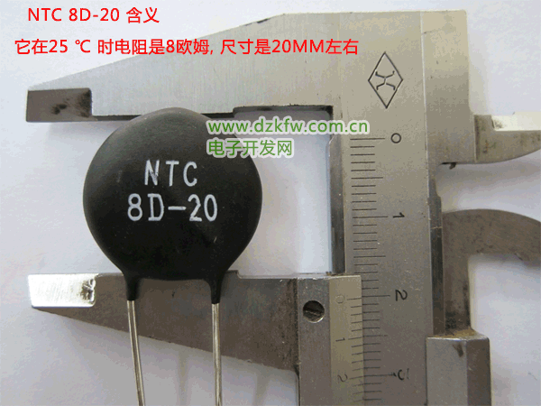 热敏电阻,主要做开关浪涌的抑制,它在25度时电阻是8欧姆, 尺寸是20MM左右