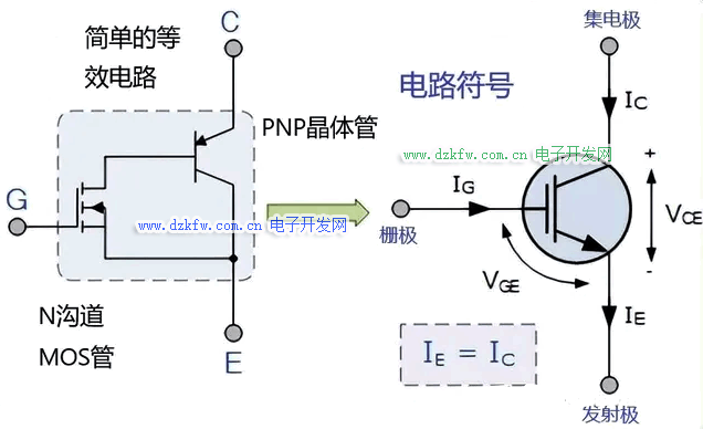 集电极和发射极是导通端子,栅极是控制开关操作的控制端子。