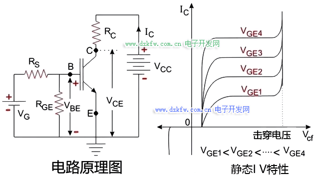 IGBT 仅在栅极端子上有电压供应时工作,它是栅极电压,即VG。