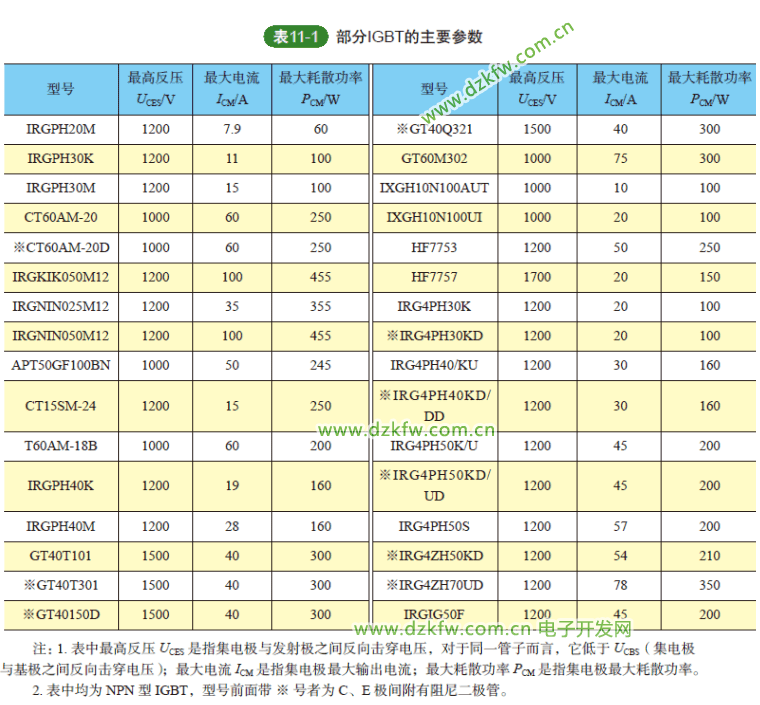 ⑥集电极最大功耗Pcm:表征IGBT最大允许功能。
