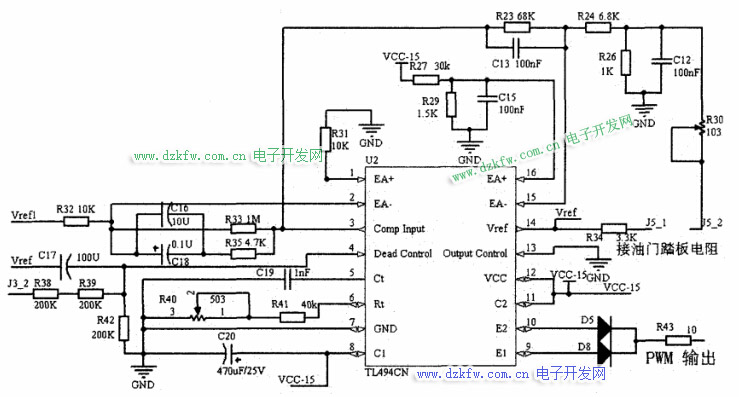 用TL494实现的单回路控制器的电路原理图如下图所示。