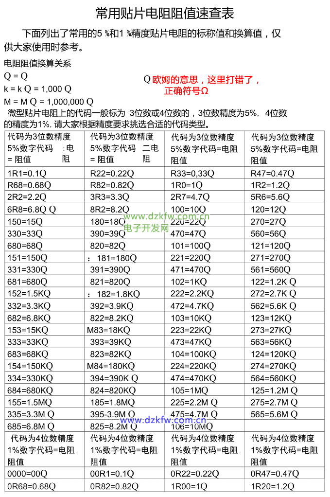 - 数字加字母直标法。如5R1,其中R表示小数点,5表示有效数值,1表示10的1次方,即5.1欧姆。