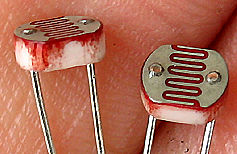 这就是光敏电阻,它能够检测外界光线的强弱,外界光线越强光敏电阻的阻值越小,外界光线越弱阻值越大,当红色LED光投射到白色区域和黑色跑道时因为反光率的不同,光敏电阻的阻值会发生明显区别,便于后续电路进行控制。