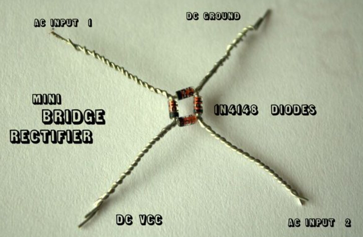 我用了一个整流桥,因为我用的交流电源(6-12V),但你可以跳过这步,只要使用电池就行。
