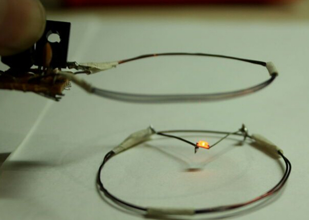 该制作主要适用于相互感应的原理。磁通量是由发射器线圈产生,连结到次级线圈(线圈与LED),因此,线圈中产生电磁场。