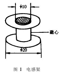 金属探测器的探头是一个关键元件,它是一个带磁心的电感线圈。磁心可选Φ10的收音机天线磁棒,截取15mm,再用绝缘板或厚纸板做两个直径为20mm的挡板,中间各挖一个Φ10mm的孔,然后套在磁心两端,如图1 所示。最后Φ0.31的漆包线在磁心上绕300匝。这样做的探头效果最好。如果不能自制,也可以买一只6.8mH的成品电感器,但必须是那种绕在“工”字形磁心上的立式电感器,而且电感器的电阻值越小越好。