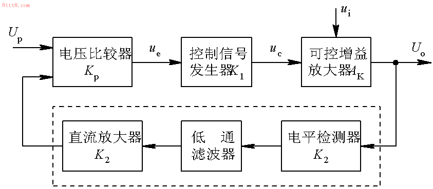 AGC电路是通过对可控增益放大器增益的控制来实现对输出信号振幅变化的限制,而增益变化又取决于输入信号振幅的变化,所以要求