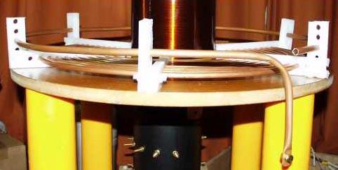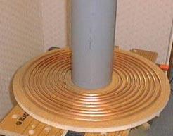 在本特斯拉线圈的设计中主线圈采用铜管绕制成蚊香状.铜管是用于汽车,供热,中央空调中的那种管壁较厚的承压铜管.直径8毫米大约绕制9-10匝 (大约需要9米)
