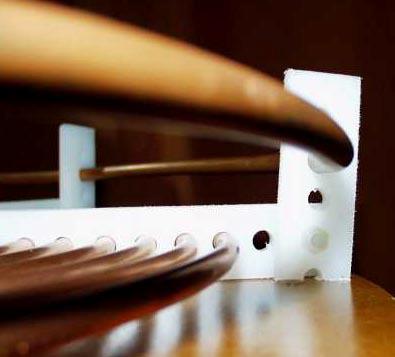 这样盘成的主线圈可以适用于6英寸到8英寸的次极线圈(盘铜管很费时间,也满费劲,但是不要图快,要尽可能盘的圆滑.),还需要5毫米厚的软塑料板(非脆性塑料)做主线圈支架,将其按等距离打眼(要打成9毫米的眼,要不穿不进去) 底座选用普通中密度板就可以了,这个底座还有用,将来底下要放其它东西.也尽可能加工好,接下来把铜管和塑料支架穿起来。