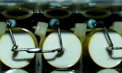 注意!电容之间不要紧密接触!要留有一定空隙,层与层之间要用4mm厚的有机玻璃隔离,每层包含两个链,固定使用塑料螺丝(一般都叫尼龙螺丝), 每层都有各自的接口使之成为独立可使用的单元,如图: