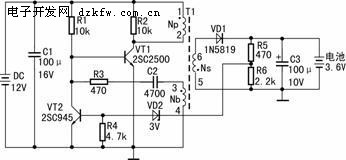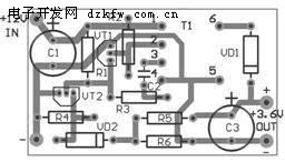 VT1要求Icm>0.5A,hEF为50-100,可用2SC2500、2SC1008等,VD1为稳压值为3V的稳压二极管。