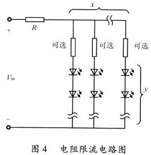 如图4所示,电阻限流驱动电路是最简单的驱动电路,限流电阻按式(1)计算。