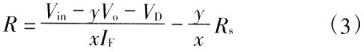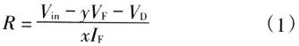 由式(4)可知电阻限流电路简单,但是,在输入电压波动时,通过LED的电流也会跟随变化,因此调节性能差。另外,由于电阻R的接人损失的功率为xRIF,因此效率低。