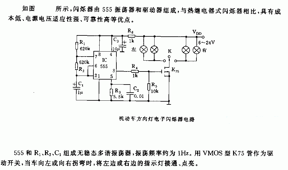 低成本机动车方向闪烁灯电路图