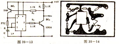 线性温度一频率变换电路的印刷电路如图39-14所示。