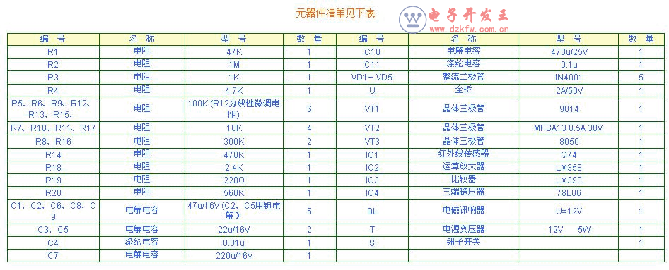该报警器的核心部件采用LM358,他能探测人体发出的红外线,当人进入报警器的监视区域内,即可发出报警声,适用于家庭、办公室、仓库、实验室等比较重要场合防盗报警。