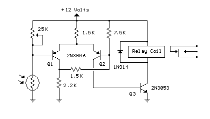 这基本上是一个施密特触发器电路接收从硫化镉光敏电阻和控制继电器。 调节电位器,使它可以进行调整起控亮度。