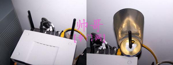 将贴好的半个罐子套到原来的AP天线上试一下松紧程度,大约以能够套进天线而且保持一定的固定能力为准。如果太松的话就再贴一些胶带上去。再试一下旋转这半个罐子,要做到能够旋转自如。象下面相片中就是合适的松紧程度:(左边的图是原来的AP样子)