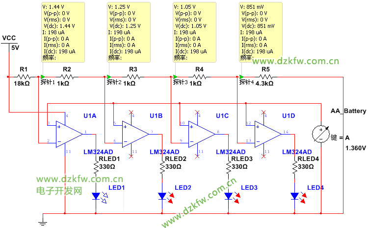 以前用LM324做过锂电指示, 今天来做1.5V电池的