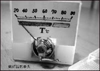 3. 接下来要做的事是在表盘上每个刻度上标上对应的温度值,用一杯热水和温度配合(将热敏电阻包起来与一只温度计同置于热水中)可以相当准确地标出对应温度(如图8)。