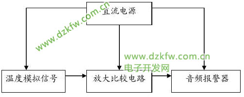 温度控制电路在工农业生产中有着广泛的应用。日常生活中也可以见到,如电冰箱的自动制冷,空调器的自动控制等等。利用热敏电阻器制作一个温度报警器,可通过调节微调电位器的阻值,改变电压比较器正向输入端的参考电压,可以改变电路报警时的温度。