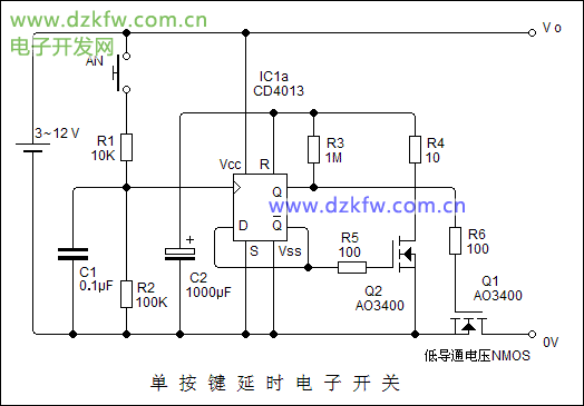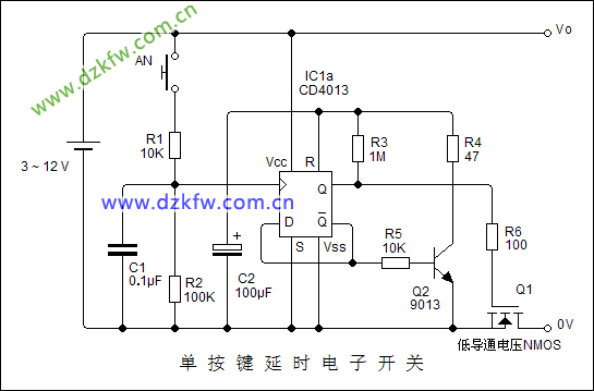 如果需要延时较长的时间,延时电容C2的容量较大,电路关断后C2需要较长的时间放电,要想短时间内重新启动就比较困难。