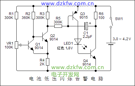上面这个电路可以调整VR1使其在3.55V时闪烁,然后把R1 、VR1换成固定电阻。