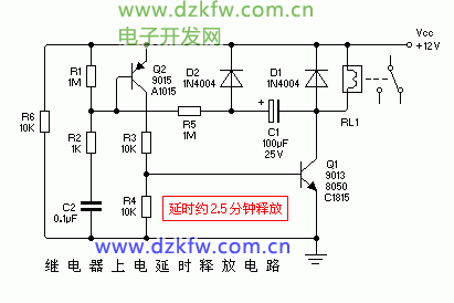 需要用到一个上电几分钟后继电器自动断开的电路,要求只能用手头上现有的器件来做,也就是常见的三极管来设计制作。