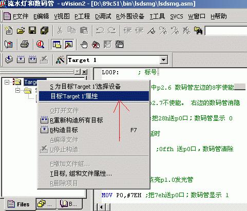 第2步 开始调试程序,点击“D调试”-“运行到F5”按钮后实验板开始工作,这时可以看到实验板上的数码灯管开始显示,说明实验板测试成功。