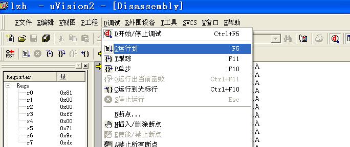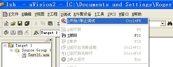 第1步 开始调试程序前,点击“D调试”-“开始/停止调试”,