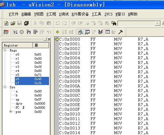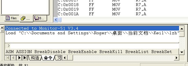 第3步,停止程序执行。按实验板仿真器上的复位键,按完后,屏幕左上角的寄存器显示有所变化。再点击“D调试”-“开始/停止调试”,则完全停止调试输出,屏幕下的“Connected To Monitor51 V3.4”消失,说明仿真器与实验板完全断开。