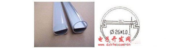 这种半圆柱的表面积为:2πR*h/2=πR*h。对于T8灯管来说,它的直径为26mm,所以半径为13mm。1.2米的T8灯管,其表面积为:π*1.3+120=490cm2,我们知道LED散热器的表面积通常要求60cm2/W。,所以这种半铝管只能散8W左右的热量。而T8型LED日光灯通常输入功率为20W,假定LED的发光效率只有20%,那么有16W的输入电功率都变成热量。而现在只能散去8W的热量,而还有8W的热量无法散去,其结果就是使得LED的结温升高,寿命缩短。