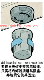 如果灯管没有故障,请尝试更换启辉器,日光灯启辉器按功率分级,因此针对灯具中灯管使用正确的启辉器至关重要。拆下旧的启辉器的方法与拆下旧的灯管的方法相同,通过转动其拿出灯具灯座,安装启辉器时,只要将其插入插座并转动以锁定到位即可。