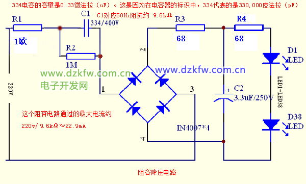 上图中R2为电容的放电电阻。R3、R4和C2组成一个T形滤波电路,目的是降低交流电整流后的纹波系数,降低LED灯的闪烁感.