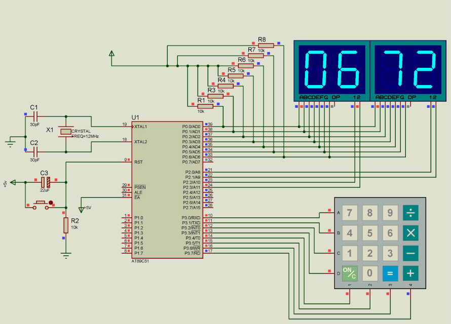 基于stc89c52的4*4矩阵键盘输入数码管,一个小计算器
