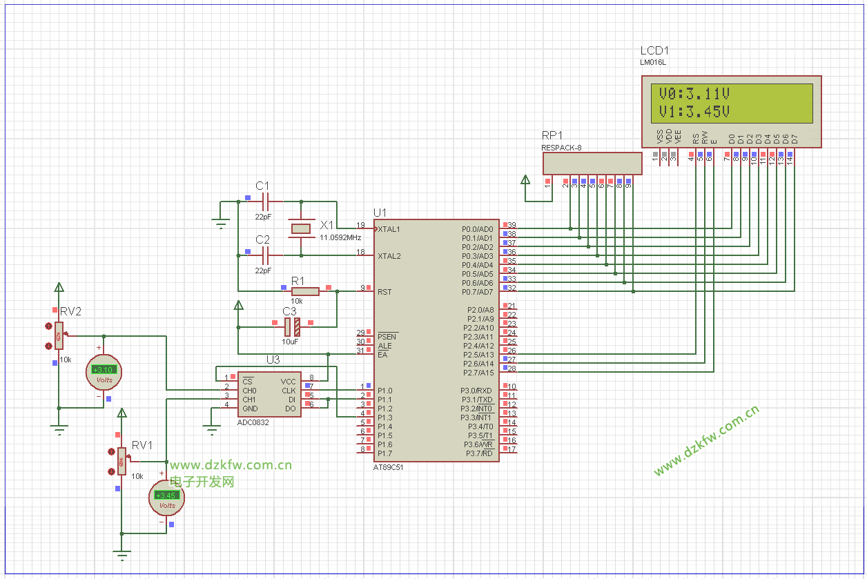 利用单片机AT89S51与ADC0809设计数字电压表,Voltmeter